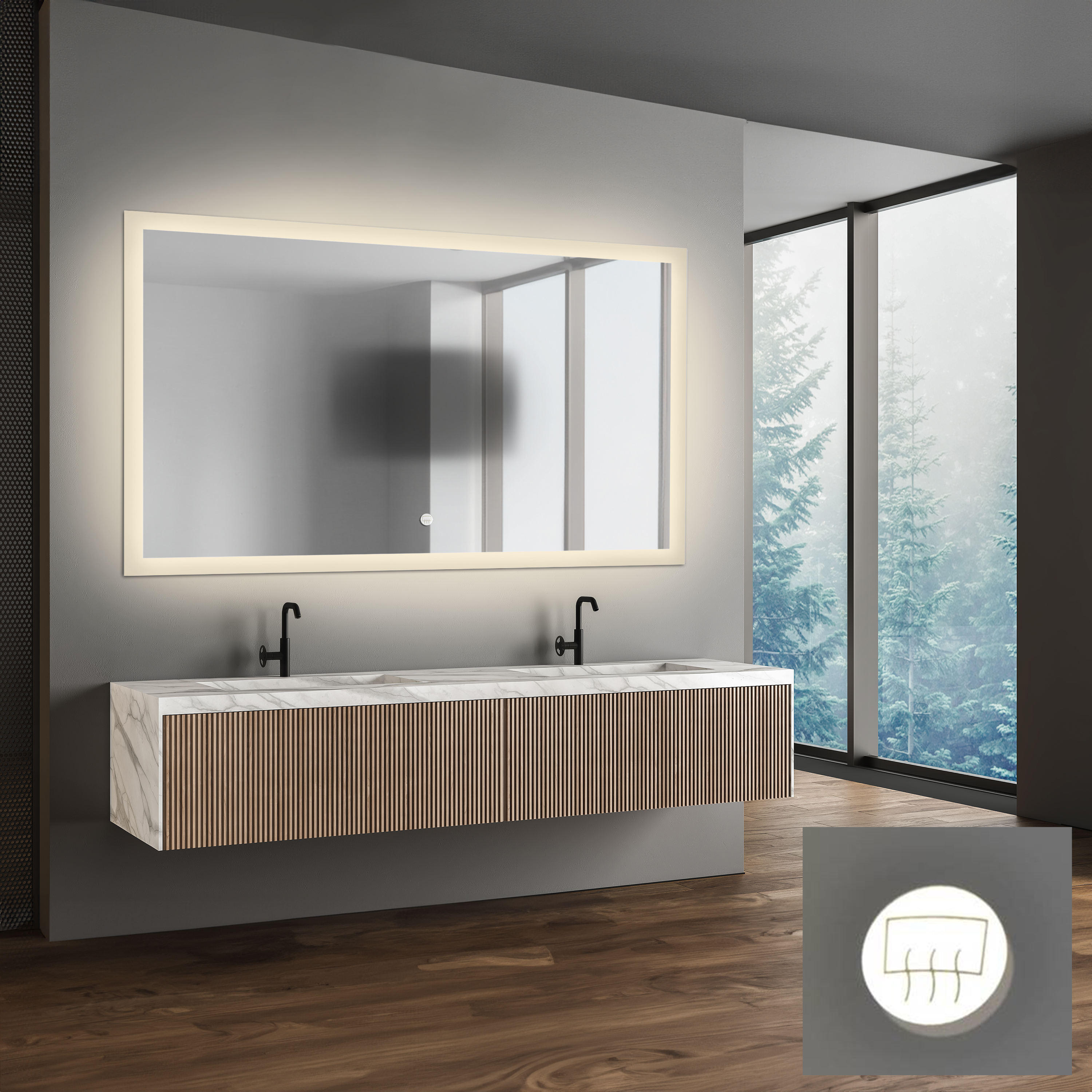De anti-condensmat heeft een onafhankelijke schakelaar waarmee de mat op elk gewenst moment kan worden ingeschakeld, ongeacht de spiegelverlichting. Het verwarmingselement bevindt zich in het midden van de spiegel en elimineert effectief condens, waardoor een helder spiegelbeeld wordt gewaarborgd. Om technische redenen kan de mat niet over het volledige spiegeloppervlak worden geïnstalleerd.